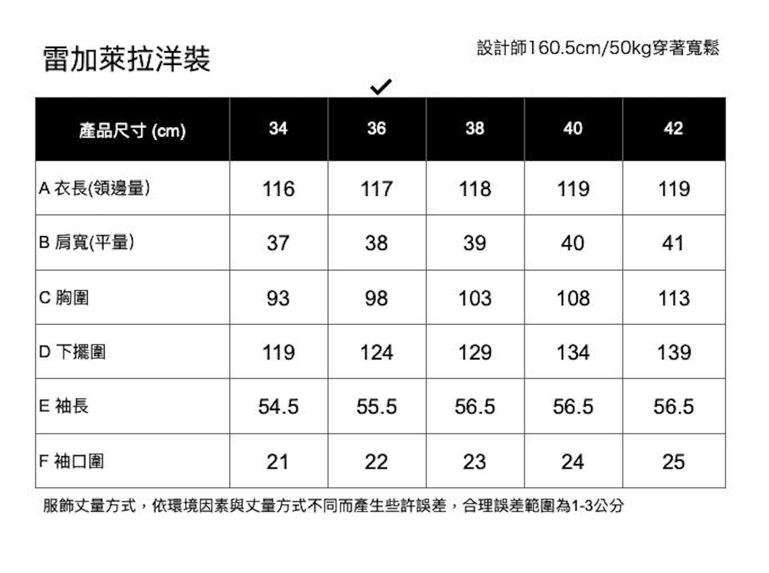 設計師本人穿36號 寬鬆